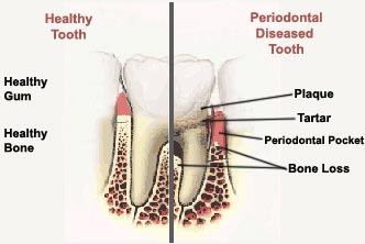 It is a progressive inflammatory disease of the gums and the surrounding tissue around the teeth. It is commonly known as gum disease and was referred to as pyorrhea in the old days. It is estimated that up to 80% of the population above the age of 40 may suffer from this disease with the severity varying drastically from one person to another. Periodontitis is the number one cause of tooth loss after the age of 40.